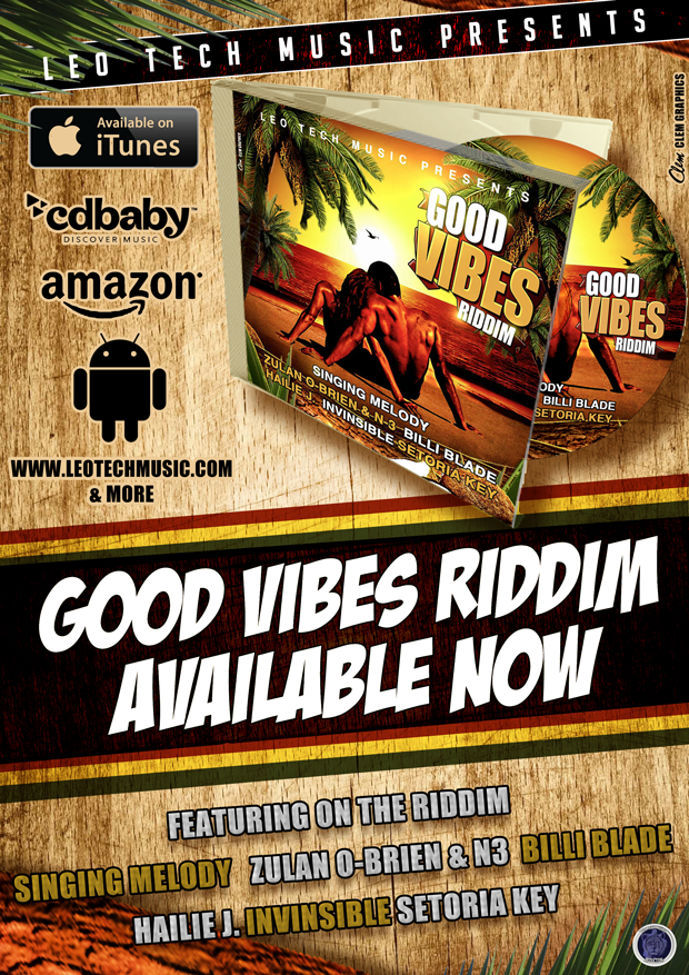 December, 24. 2013 (Riverdale, Md) Leo Tech Music released GOOD VIBES RIDDIM (Leo Tech Music Present's) EP. This album features Moments by Singing Melody who's last album They Call Me Mr. Melody was very well received, as well as new comer's making waves Billi Blade with 20 To Life, Zulan O'Brien & N3 with Good Love, Hailie J. with All I Had, Remember The Days by Invinsible, and the title track Good Vibes by Setoria Key.
